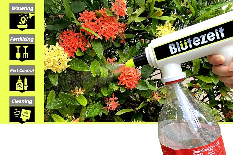 Amazon Com Blutezeit Electric Sprayer For Indoor Outdoor Plants Automatic Plant Mister With Timer 2 Adjustable Nozzles Fits Pop Bottles Rechargeable Battery Powered For Garden Lawn Farm Fertilizer Spraying Patio Lawn